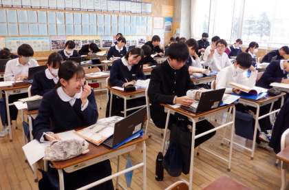 2学年 進路学習 その2 公開日 2023/12/13 更新日 2023/12/13 芝園の一日 12月13日(水) 2限 集会の後、2年生は教室で高校調べに集中しています。「将来、どうしようかな〜」「こんなにたくさんの高校があるんだ」など、つぶやきも聞こえてきます。 これからどう生きていくか、.自分の将来に夢と希望をもって、自分の人生をたくましく切り拓いてほしいです。がんばろう、2年生!