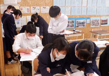 分かるまでとことん 2−B数学 公開日 2023/12/15 更新日 2023/12/15 芝園の一日 12月15日(金) 2限 2−Bの数学の授業風景です。証明問題の練習をしています。じっくり一人で考えている生徒、友達と相談している生徒、それぞれが分かるまでとことん学習しています。