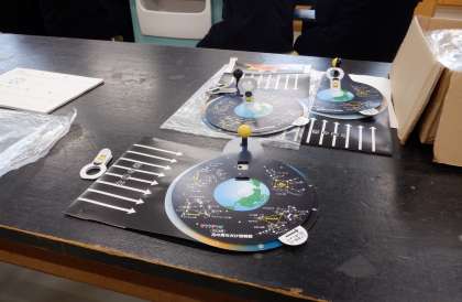 地球の公転と星座の見え方 3−A理科 公開日 2023/12/18 更新日 2023/12/18 芝園の一日 12月18日(月) 1限 3−Aの理科の授業風景です。最初に、地球の自転や公転に関する問題を解いた後、モデルを使って星座の見え方を確認します。