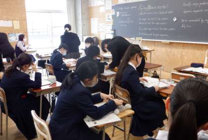 3−Dの英語の授業風景です。質問に対して、自由に聞いたり自分の考えを伝えたりしています。