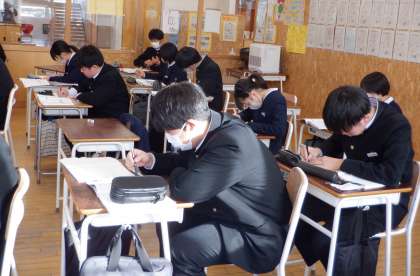 問題にチャレンジ 3−A数学 公開日 2023/12/19 更新日 2023/12/19 芝園の一日 12月19日(火) 1限 3−Aの数学の授業風景です。三平方の定理を用いて、問題に挑戦しています。一問一問を分かるまでとことん頑張ろう!