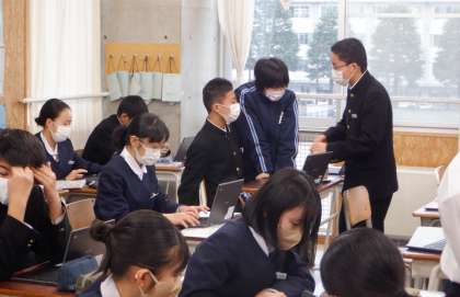 18歳の私が・・・ 2−B家庭科 公開日 2023/12/20 更新日 2023/12/20 芝園の一日 12月20日(水) 1限 2−Bの家庭科の授業風景です。18歳で成人になることを踏まえて、金融教育の内容を学習しています。