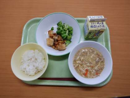・中華かきたま汁 ・ゆでブロッコリー です。
