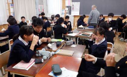 音の伝わり方 1−C理科 公開日 2023/12/21 更新日 2023/12/21 芝園の一日 12月21日(木) 2限 1−Cの理科の授業風景です。今日は音の伝わり方を確かめる「糸電話」の実験をしました。初めて糸電話をする生徒もおり、授業は大盛り上がりです。