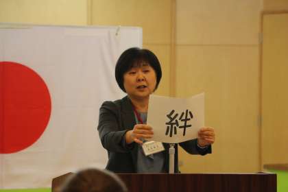 校長先生が選んだ、芝園中学校の今年の漢字は「絆」そして「挑」です。