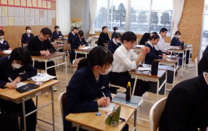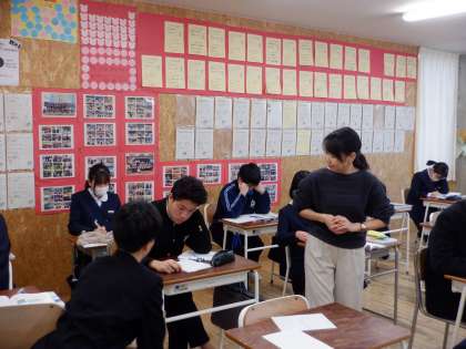 三平方の定理を活用して 3−B数学 公開日 2024/01/10 更新日 2024/01/10 芝園の一日 1月10日(水) 1限 3−Bの数学の授業風景です。三平方の定理を活用して、いかに問題を解決するか。生徒は集中して考えています。