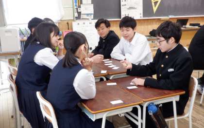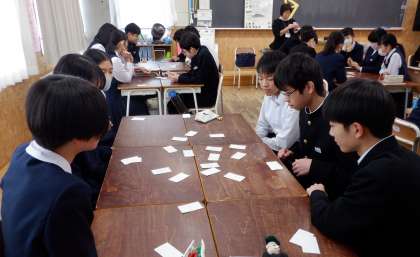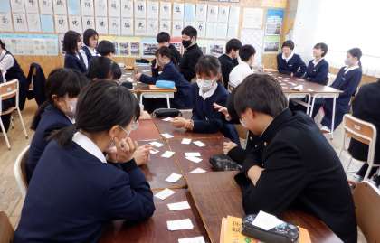 楽しく学ぶ 1 2−A数学 公開日 2024/01/11 更新日 2024/01/11 芝園の一日 1月11日(木) 1限 2−Aの数学の授業風景です。かるた方式で、1次関数の復習をしています。先生が読み上げた条件に合ったかるたを探すことができるか?楽しく学習しています。