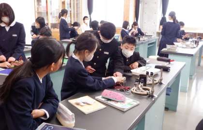 電気回路 2−C理科 公開日 2024/01/11 更新日 2024/01/11 芝園の一日 1月11日(木) 1限 2−Cの理科の授業風景です。実験を通して、電流が流れるとはどういう現象なのか、深く考察をしています。実験は楽しいですね。