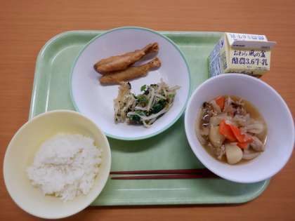 今日の給食 公開日 2024/01/15 更新日 2024/01/15 芝園の一日 1月15日(月) 今日の給食メニューは、 ・ごはん ・牛乳 ・わかさぎフリッター ・豚肉の南蛮煮 ・ごまびたし です。 わかさぎは身がふっくら、外はカリッと揚がって美味しかったです。