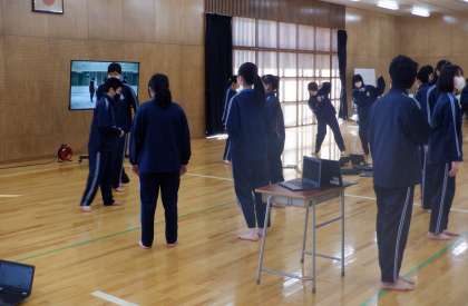 Let's ダンス ダンス! 3−D体育 公開日 2024/01/17 更新日 2024/01/17 芝園の一日 1月17日(水) 2限 3−Dの体育の授業風景です。昨日に引き続き、3−Dです。昨日よりもキレのあるダンスになっています!