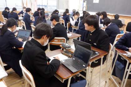 食生活を見直して 2−A家庭科 公開日 2024/01/19 更新日 2024/01/19 芝園の一日 1月19日(金) 1限 2−Aの家庭科の授業風景です。自分の食生活改善に向けた、課題解決学習をしています。