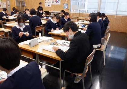 思い出を作品に込めて 3−C美術 公開日 2024/01/19 更新日 2024/01/19 芝園の一日 1月19日(金) 1限 3−Cの美術の授業風景です。ペーパーウェイトの制作をしています。3年間の思い出をデザインしています。
