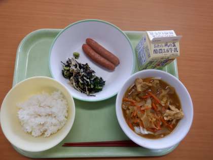 今日は「持久力アップ献立〜スタミナ切れを防ごう!〜」です。カレーうどんにごはんで、エネルギー源となる糖質をたっぷりとりました。とっても美味しかったです!