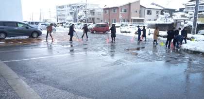 今朝は2年生が除雪当番でした。来賓駐車場や給食物資搬入口などを雪かきしてくれました。中には、いつもボランティアをしてくれる3年女子の姿も!