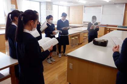 思いを込めて 3−C音楽 公開日 2024/01/24 更新日 2024/01/24 芝園の一日 1月24日(水) 1限 3−Cの音楽の授業風景です。卒業の歌の練習をしています。パート毎にリーダーが中心となって、3年間の思いを込めて、みんなで活動しています。ステキです、3年生!