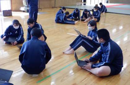 ダンスの振り返り 3−B体育 公開日 2024/01/25 更新日 2024/01/25 芝園の一日 1月25日(木) 3限 3−Bの体育の授業風景です。ダンス中間発表会を終えて、動画を見ながら振り返りをしています。