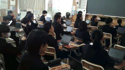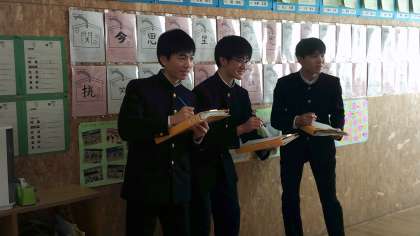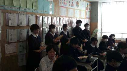 本日、「先輩から受け継ぐ芝園プライド 第2弾」として、1年生の授業の様子を、3年生の先輩方が見に来てくれました。