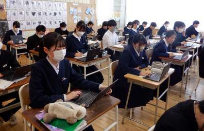 標本調査 3−D数学 公開日 2024/01/25 更新日 2024/01/25 芝園の一日 1月25日(木) 3限 3−Dの数学の授業風景です。標本調査について学習しています。端末を活用しながら、課題を進めています。