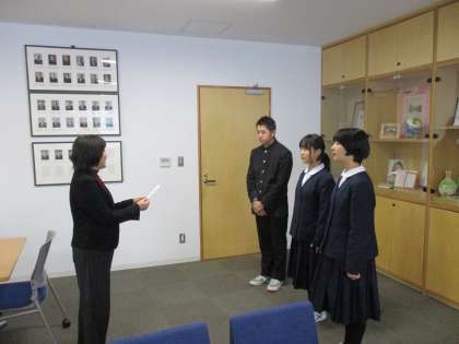 富山県アンサンブルコンテストに向けて 公開日 2024/01/26 更新日 2024/01/26 芝園の一日 1月28日(日)に行われる、富山県アンサンブルコンテストに参加する生徒の激励会を行いました。生徒は、「気持ちをそろえて演奏したい」「楽しく演奏をしてきます」と意気込みを述べました。最高のステージをぜひ楽しんできてくださいね。