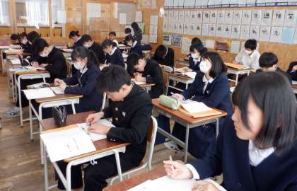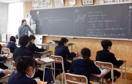 2−Cの数学の授業風景です。証明問題は難しいですが、集中して考えています。2年生、頑張っています!
