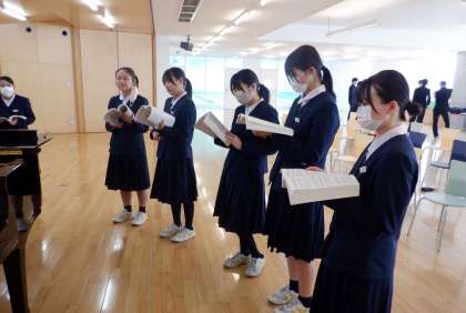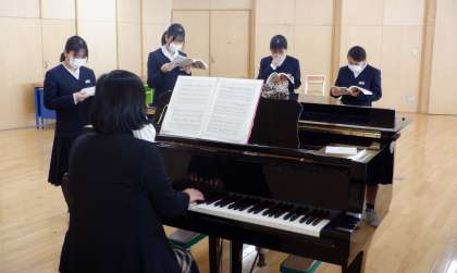 3−Bの音楽の授業風景です。3年生の音楽は、卒業式の合唱練習をしています。ランチルームからは、美しい合唱が聞こえてきます。