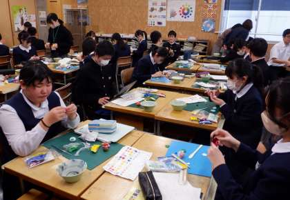 個性溢れる和菓子 2−C美術 公開日 2024/02/05 更新日 2024/02/05 芝園の一日 2月5日(月) 3限 2−Cの美術の授業風景です。紙粘土で作る和菓子。金魚や雪だるまなど、個性的な作品がずらり。楽しいですね。