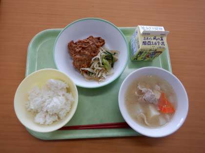 今日の給食 公開日 2024/02/07 更新日 2024/02/07 芝園の一日 2月7日(水) 今日の給食メニューは、 ・ごはん ・牛乳 ・魚の利休揚げ ・豚汁 ・もやしのおひたし です。 利久揚げは、とても大きくサックリ揚がっていて美味しかったです。