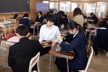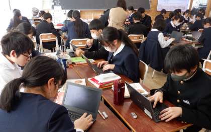 課題解決型学習 2−A家庭科 公開日 2024/02/09 更新日 2024/02/09 芝園の一日 2月9日(金) 1限 2−Aの家庭科の授業風景です。一人一人が課題を決めて、追究学習をしています。「脂肪を控えた食生活にするには?」「魚嫌いを克服するメニューを開発しよう」など、自分の食生活を振り返って課題を設定しています。どんな追究学習となるのか、楽しみです。
