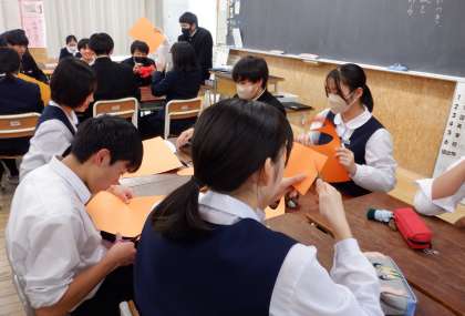 2年生では、卒業式に向けて準備を始めました。お世話になった3年生を、心を込めて送ります。