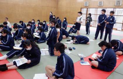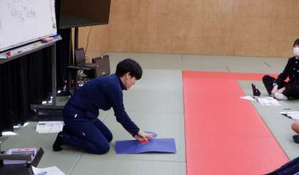 心肺蘇生法 その1 2−C保健 公開日 2024/02/15 更新日 2024/02/15 芝園の一日 2月15日(金) 4限 2−Cの保健の授業風景です。今日は心肺蘇生法について学んでいます。まずは、先生のお手本をよく見て確認!