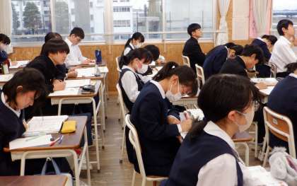 2月22日(木) 1限 2−Aの数学の授業風景です。確率の学習をしています。