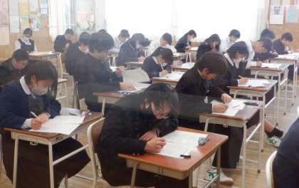 学年末考査1日目 1年生 公開日 2024/02/26 更新日 2024/02/26 芝園の一日 2月26日(月) 2限 1、2年生は今日から学年末考査です。画像は1年生です。今年度最後の定期考査。いつもよりもまして、集中しています!