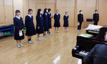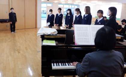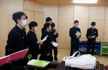 卒業生へ贈る歌 1−C音楽 公開日 2024/03/01 更新日 2024/03/01 芝園の一日 3月1日(金) 5限 1−Cの音楽の授業風景です。卒業式で合唱する「明日へつなぐもの」の練習をしています。