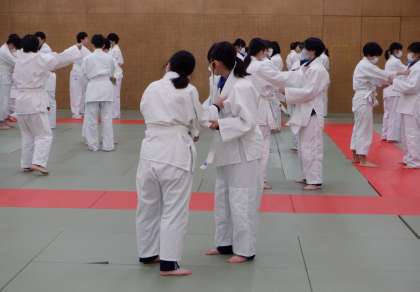 3月1日(金) 5限 2−Bの体育の授業風景です。技をかける姿も様になってきましたね。