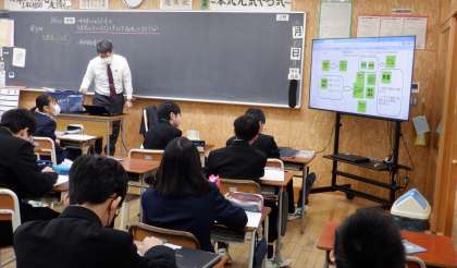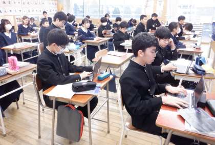 トマトを1年中食べられるには 1−C技術 公開日 2024/03/04 更新日 2024/03/04 芝園の一日 3月4日(月) 1限 1−Cの技術の授業風景です。「1年中トマトを食べられるようにするには、どうしたらよいか」という課題で学習をしています。