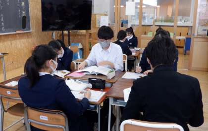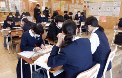 互いに教え合って 3−D国語 公開日 2024/03/04 更新日 2024/03/04 芝園の一日 3月4日(月) 2限 3−Dの国語の授業風景です。グループで互いに教え合って学習を進めています。いい雰囲気です。