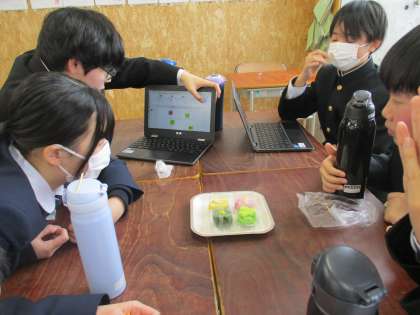 和菓子に込めた日本の心 1−A家庭科(その2) 公開日 2024/03/05 更新日 2024/03/05 芝園の一日 3月5日(火) 「二十四節気」を知る生徒もいて、季節や地名を取り入れた銘がつきました。 和の心をもってお菓子をいただきました。