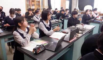 磁界の様子 2−A理科 公開日 2024/03/05 更新日 2024/03/05 芝園の一日 3月5日(火) 2限 2−Aの理科の授業風景です。磁界の様子の確認をしています。端末を活用したり、先生お手製の磁界マシンを使ったりと、いろいろな方法で理解を深めています。