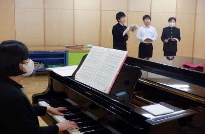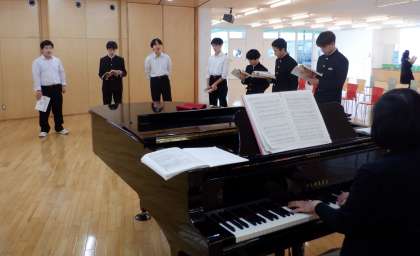 3月5日(火) 2限 3−Bの音楽の授業風景です。卒業の歌の練習をしています。