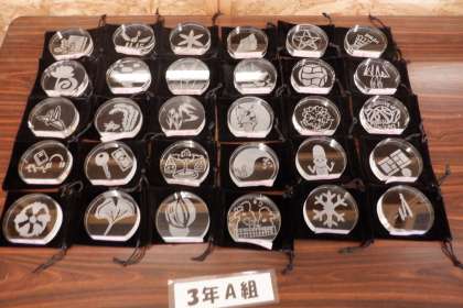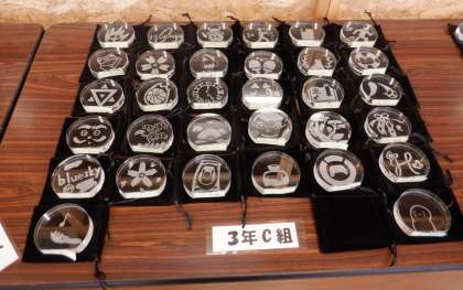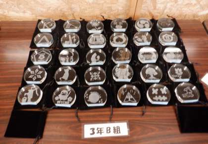 思い出の作品 3年生美術 公開日 2024/03/06 更新日 2024/03/06 芝園の一日 3月6日(水) 美術室前に、3年生が制作したペーパーウェイトが展示してあります。中学校の思い出をモチーフにサンドブラストの加工をしました。
