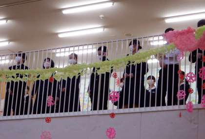 卒業式は、3年生の先輩と歌う最後の校歌となります。心を込めて歌いましょう。