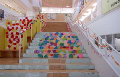 卒業に向けて 公開日 2024/03/11 更新日 2024/03/11 芝園の一日 3月11日(月) 卒業式に向けて、大階段の飾り付けが完成しました。階段壁面の桜には、在校生からのメッセージが書いてあります。3年生の先輩方、お世話になりました。