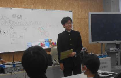 コンピュータ部のお別れ会の様子です。先輩、お世話になりました。