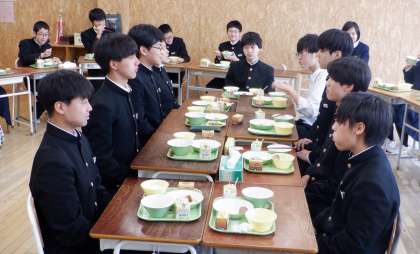3年生 最後の給食 その5 公開日 2024/03/13 更新日 2024/03/13 芝園の一日 3月13日(水) 3−Dです。中央の男子が怪しげな動きをしていますね。 芝園中学校で食べた給食を、時々思い出してくれたら嬉しいです。