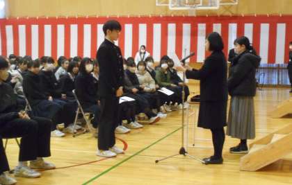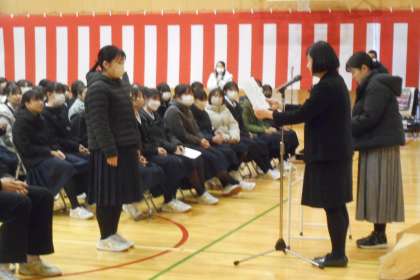 3月13日(水) 4限 表彰では、先生も生徒もみんな笑顔であたたかい雰囲気でした。