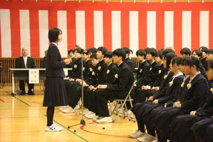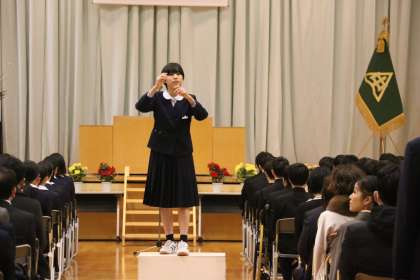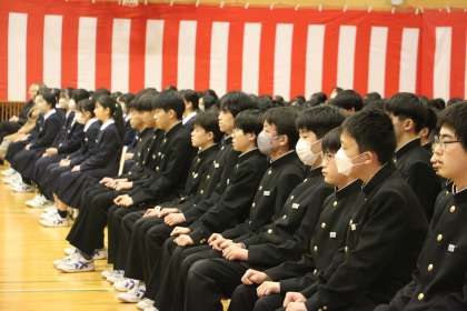 第75回卒業証書授与式 その8 公開日 2024/03/14 更新日 2024/03/14 芝園の一日 3月14日(木) 在校生の代表が掃除を述べました。その後、在校生が「明日へつなぐもの」を合唱しました。3年生の最後の勇姿を目に焼き付けようと、真剣な態度で臨んでいます。
