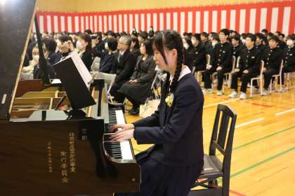 第75回卒業証書授与式 その10 公開日 2024/03/14 更新日 2024/03/14 芝園の一日 3月14日(木) 3年生の「旅立ちの歌」です。心のこもった迫力ある歌声、美しいハーモニーに魅了されました。さすが、3年生の歌声です。