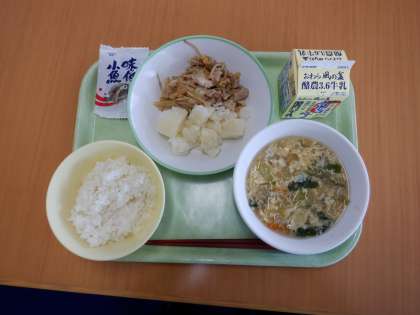 ・中華かき玉汁 ・こふきいも ・味付け小魚 です。
