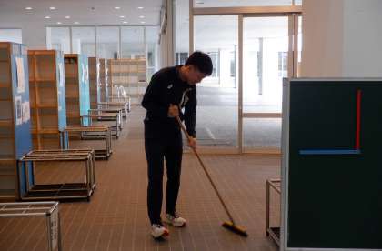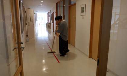 春休み中は生徒が登校しないので、毎日11:45から先生たちで校舎の清掃をしています。来校者の方が気持ちよく来られるよう、心を込めて清掃をします!