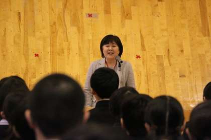 また、春休みの宿題として、新学期に向けての目標を立てることが出されていました。校長先生が呼びかけると、2人の生徒が勇気を出して、挙手をして発表してくれました。体育館には2人をたたえる温かい拍手であふれていました。